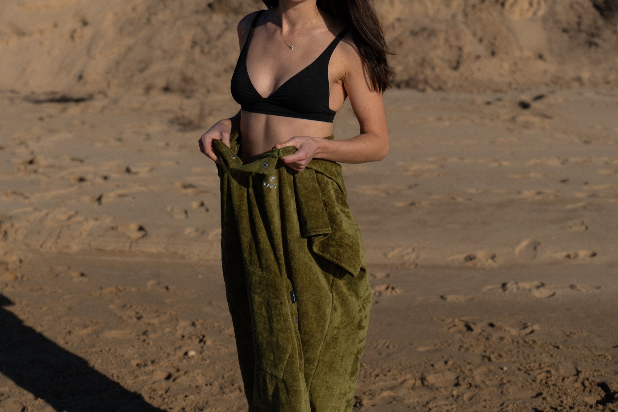 Just was what I was looking for in a quality, well designed, versatile and stylish change towel. Love the neck opening, side pockets with slits to assist with dressing, velcro pocket to secure personal items. Bought the olive, three classic colours and was hard to choose, but happy with the olive. Prompt processing and delivery of item. Will not be disappointed if you purchase this item.