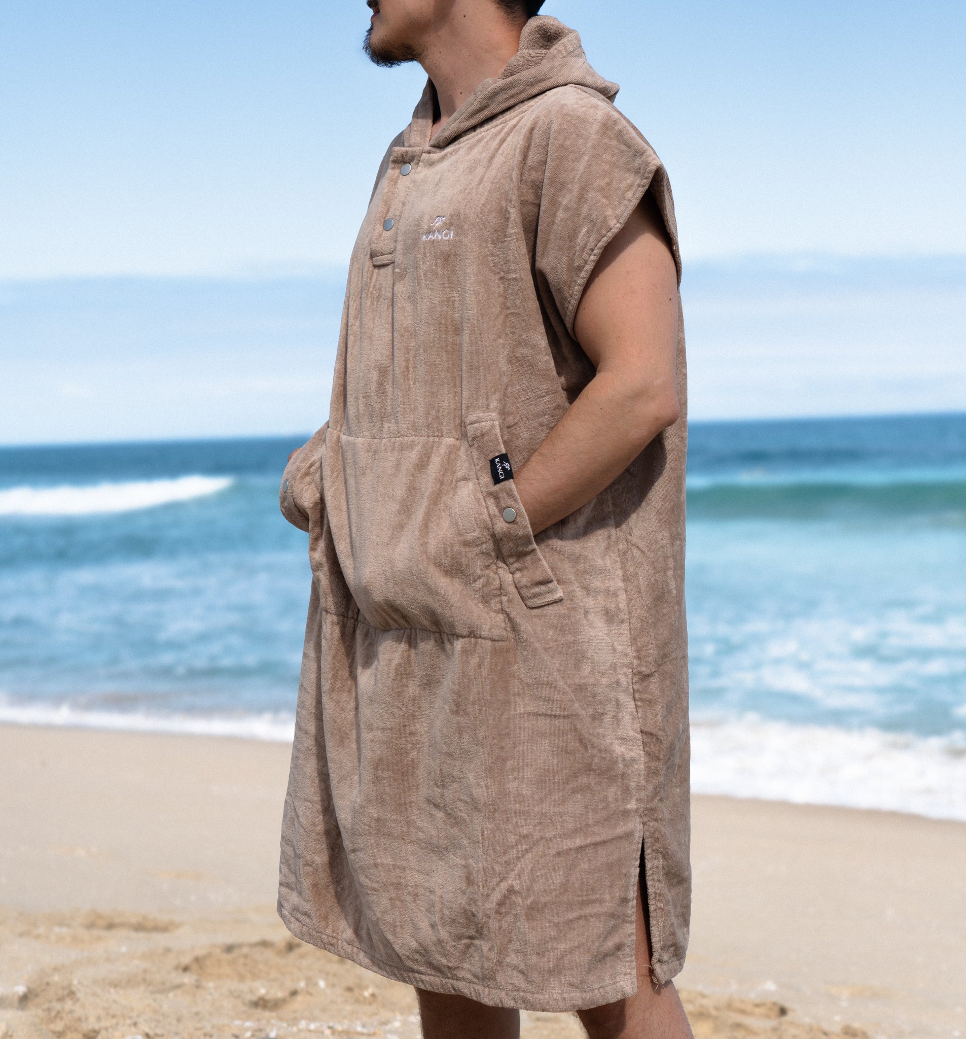 Wore my new Kangi to the pool yesterday. Not only lots of positive comments on how it looked but also everything as advertised. Kangi on and wet swimsuit underneath off - and easy enough to slip something on to the 'bottom half'. Sufficiently volumous to be warm and cosy and the hood is great sun / wind protection. The 'secret pocket' was a bit hard to find (ha ha) and a great idea. It just might become my defacto laze about gear - it is so comfy!!!