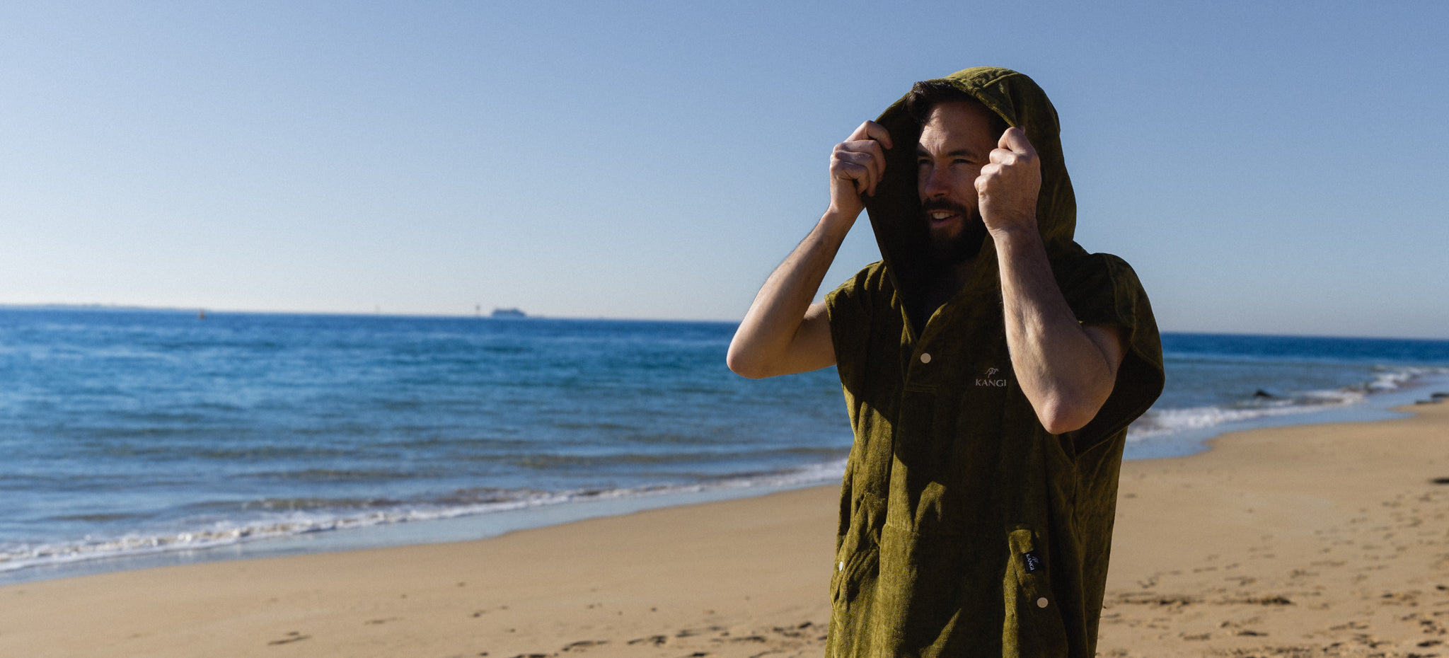 Put your phone, keys, sunscreen, e-reader, or even your thongs in the deep kangaroo pockets and enjoy a hands-free beach walk! The Kangi Hooded Towels are also perfect to get changed in the gym or campsite after a shower, or to wear it as a beach blanket, a wrap for warmth, or a beach cover up for shade.