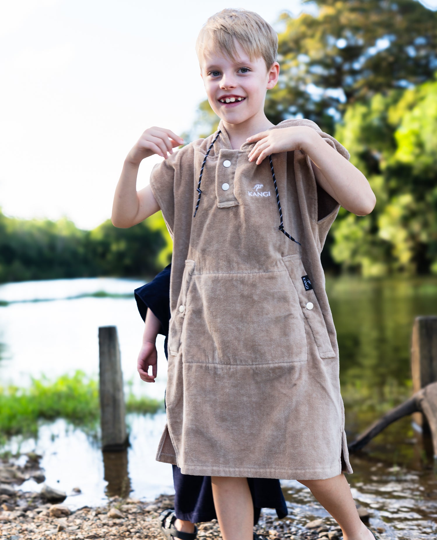 Our Kangi Kids Hooded Towels make changing quick, comfy, and fuss-free! Featuring a handy internal opening so little hands (and grown-up helpers!) can slip in and out easily when changing (without lifting the towel up!). The roomy fit, wide sleeves, cosy oversized hood, easy-adjust buttons, and helpful side splits give kids plenty of space and comfort—perfect after swimming or beach play!